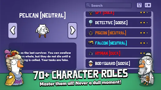 Goose Goose Duck is a social deduction game where geese complete tasks while ducks sabotage and try to eliminate them. Play as a goose to survive or a duck to wreak havoc, with proximity voice chat, unique roles, custom cosmetics, and diverse environments to explore.